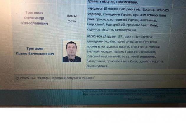 На столичном мажоритарном округе №219 (Святошинский район) документы на регистрацию кандидатами в депутаты подали два родных брата, которые являются однофамильцами действующего народного депутата от этого округа – главы Комитета по делам ветеранов и лиц с инвалидностью Александра Третьякова. Об этом сообщают "Факты".