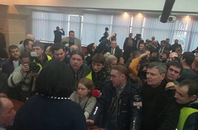 Народные депутаты от оппозиции 24 декабря выломали дверь в зал заседаний Соломенской РГА, в котором проходило выездное заседание Киевсовета, после чего заблокировали ее проведение, скандируя "Перерва!".