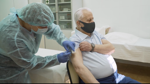 Первый президент Украины и глава украинской делегации в ТКГ Леонид Кравчук сделал прививку против ковида препаратом Covishield. Сделал он это публично, поэтому это транслировали несколько телеканалов.