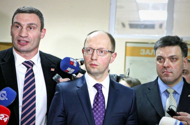 Главы оппозиционных парламентских фракций Виталий Кличко ("УДАР"), Арсений Яценюк ("Батьківщина") и Олег Тягнибок ("Свобода") покинули администрацию президента, где проходила их встреча с членами рабочей группы по урегулированию политического кризиса.