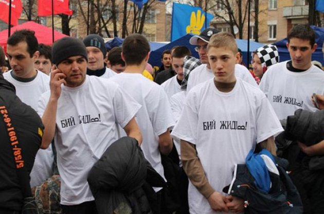 Напомним, что 6 апреля в Черкассах состоялся митинг оппозиции. На Театральной площади появилась группа молодых людей в футболках с надписями "ВО "Свобода" на спине и лозунгами "Бий жидів!" - на груди. Организаторы митинга немедленно обратились к присутствующим на мероприятии правоохранителям с требованием задержать парней и принять все необходимые меры.