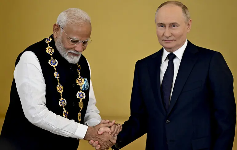 "Имел замечательную встречу с президентом Путиным. Наше особое и привилегированное стратегическое партнерство остается важной опорой региональной и глобальной стабильности", — написал Моди в социальной сети X, добавив, что они обсудили сотрудничество "во всех секторах, включая торговлю, удобрения, космос, безопасность и культуру".