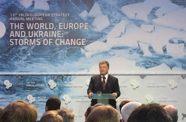 "Ни одного шага вперед пока российская сторона не отведет свои войска на безопастное расстояние и не осуществит меры в сфере безопасности", - заявил он, выступая на 13-й ежегодной встрече Ялтинской Европейской Стратегии (YES) в пятницу в Киеве.