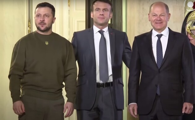 «Украина может рассчитывать на нас в развитии мира», — сказал французский лидер, выступая вместе с Зеленским и канцлером Германии Олафом Шольцем в Париже.