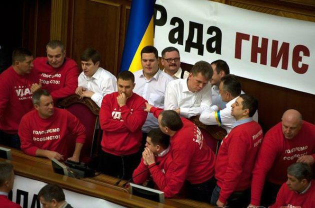 Напомним, перед открытием 2-ой сессии парламента представители всех оппозиционных партийзаблокировали трибуну с требованием ввести в Верховной Раде персональное голосование.