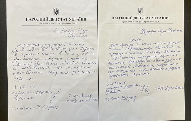 «Заявления на сложение полномочий народного депутата Украины в Верховную Раду поступили. Официально», – написал он и опубликовал сами заявления.