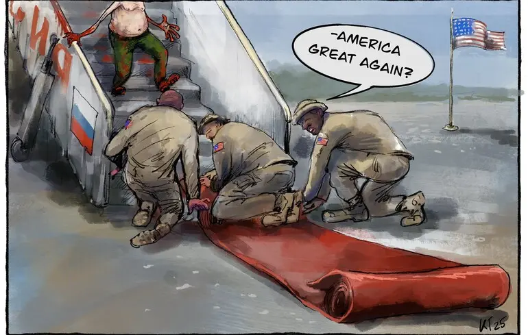 В ночь на 16 августа в Анкоридже (Аляска, США) состоялся саммит президента США Дональда Трампа и президента РФ Владимира Путина. Встреча в Анкоридже стала не только политическим, но и культурным явлением. Событие спровоцировало реакцию культурного сообщества: художники и иллюстраторы отреагировали на встречу своими работами, которые быстро распространяются в соцсетях.
