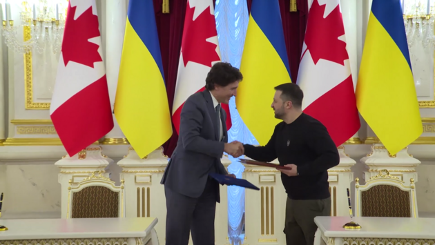 Президент Владимир Зеленский и премьер-министр Канады Джастин Трюдо в субботу, 24 февраля, подписали двустороннее соглашение о сотрудничестве в сфере безопасности.