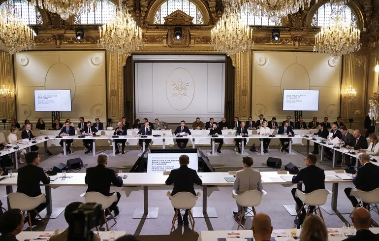 "Созданию под руководством Европы "многонациональных сил Украины", сформированных за счет взносов стран-участниц в рамках "коалиции желающих" и при поддержке США. Эти силы будут способствовать восстановлению вооруженных сил Украины, обеспечению безопасности воздушного пространства Украины и поддержанию безопасности на море, в том числе путем проведения операций на территории Украины".