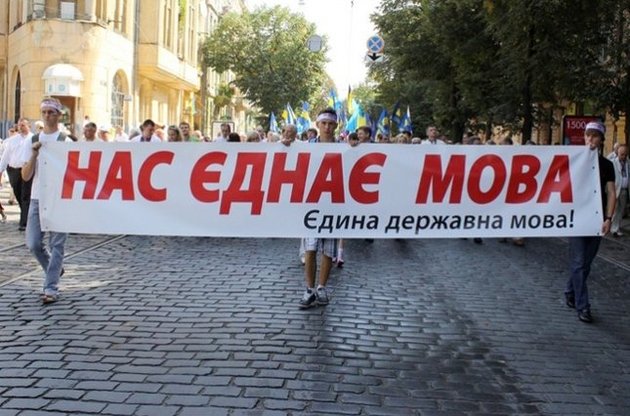 Украинское общество говорит о реформах. В многоголосии новых императивов красноречивым является отсутствие программы возрождения украинского языка. Язык был едва ли не одним из главных объектов русификаторской политики Кремля и его адептов в Украине. Как ни парадоксально, Революция достоинства не только не покончила с массовой русификацией, но и породила новые ее формы. Под предлогом сохранения "єдиної країни"/"единой страны" второе дыхание получило украинско-русское двуязычие - самая разрушительная форма русификации. Между тем возрождение языка остается вне программ главных политических партий. Это прямое следствие того, что политический дискурс в Украине - перечень главных тем украинской политики - определяется не в Киеве, а в Кремле. Все, на что до сих пор была способна украинская политическая и культурная элита, в основном сводилось не к созданию собственной государственной программы, а к тому, чтобы реагировать на идеологемы, транслируемые из Кремля.