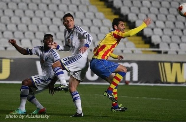 Киевское "Динамо" уступило 0:2 "Валенсии" в первом матче 1/16 финала Лиги Европы, который был перенесен из Киева в Никосию.