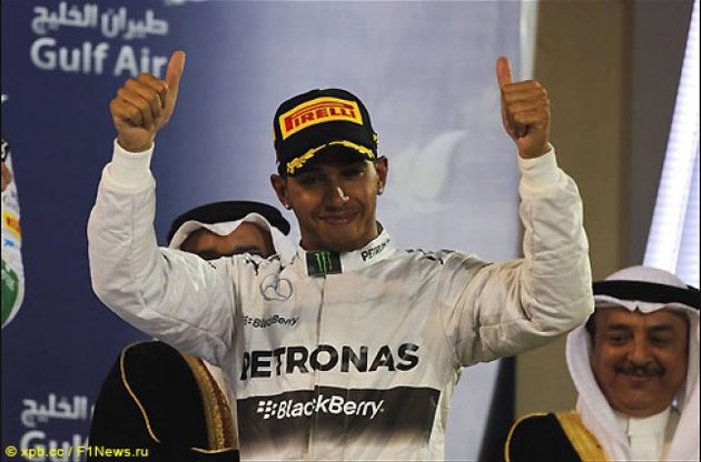 Британец Льюис Хэмилтон в напряженной борьбе с партнером по "Мерседесу" Нико Росбергом выиграл первый в истории ночной Гран-при Бахрейна и укрепил лидерство в чемпионате мира по гонкам серии Формула-1.