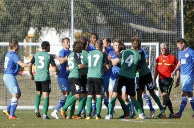 Товарищеский матч между футбольными клубами "Краснодар" и "3", состоявшийся 10 февраля в Испании, где обе команды проводят учебно-тренировочные сборы, был прерван на 45-й минуте из-за массовой драки игроков.