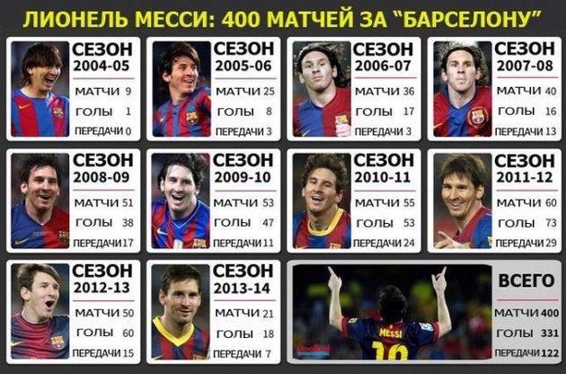 22 января аргентинский форвард "Барселоны" Лионель Месси сыграл свой 400-й матч в составе каталонского клуба.