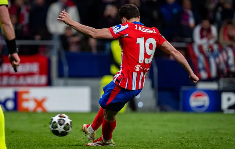 Вторым в составе "Атлетико" пробивал Хулиан Альварес. В момент удара у аргентинца поехала левая нога, но с правой он сумел переиграть Тибо Куртуа.