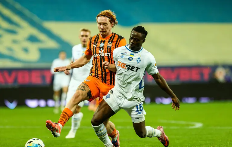 В начале второго тайма национального дерби защитник дончан Ефим Конопля жестко влетел в легионера киевлян Шолу Огундану в собственной штрафной. Игрок "Шахтера" затем также упал после толчка от нигерийца.