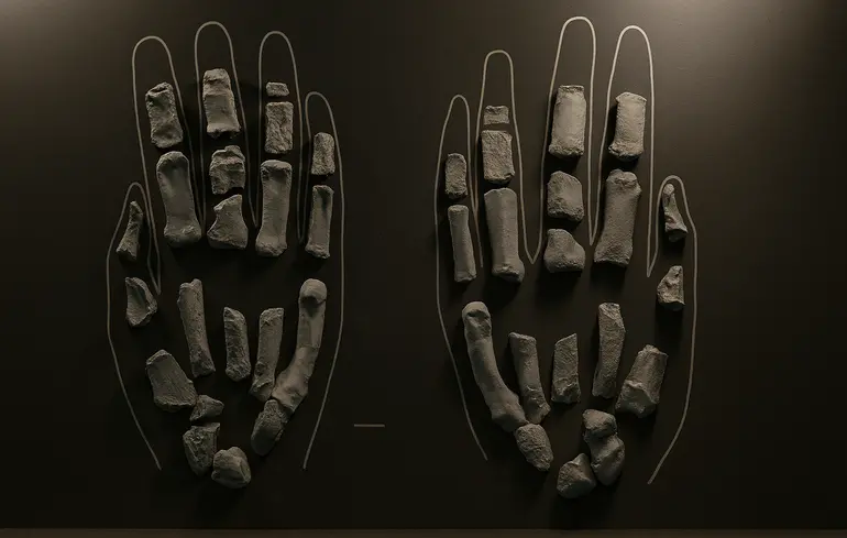 Палеонтологи нашли хорошо сохранившуюся кисть левой руки парантропа и с ее помощью реконструировали правую (на фото — собственно такая реконструкция). Также нашли окаменелости стоп. Останки подтверждают гипотезу исследовательницы Мэри Лики о том, что парантроп является древнейшим из известных науке производителем орудий труда.