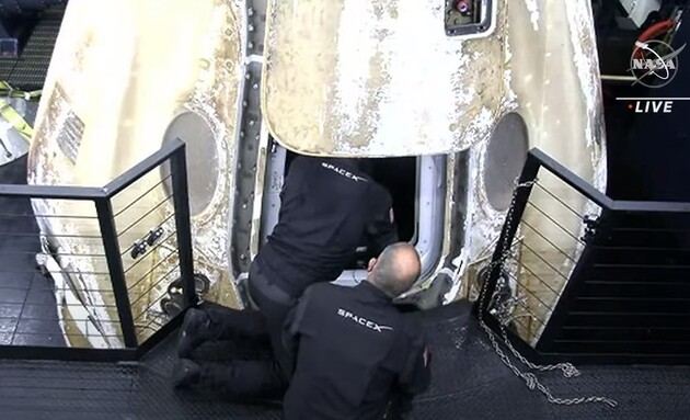 Капсула Dragon спустилась с парашютом в Мексиканском заливе у побережья Панама-Сити, штат Флорида, незадолго до 3 часов ночи, завершив второй полет астронавта компании Илона Маска.