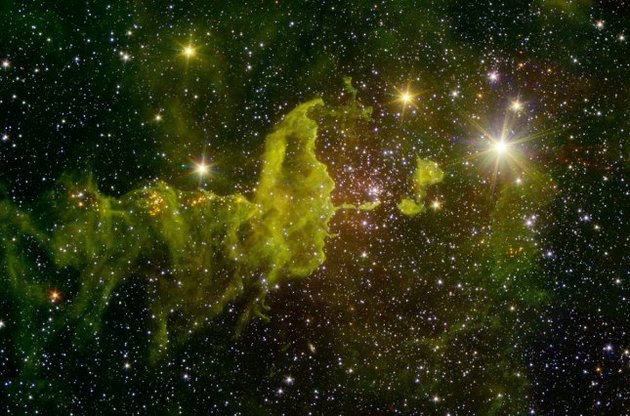 Астрономы с помощью телескопа "Спитцер" получили изображение туманности "Паук". Туманность, официально названная IC 417, находится рядом с более мелким объектом NGC 1931, который не попал на изображение. Вместе они составляют объект "туманность Паук и Муха". Снимок был опубликован на официальном сайте NASA.