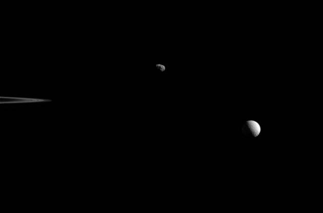 Исследователи миссии Cassini опубликовали новый снимок спутников Сатурна Мимаса и Януса, которые расположились недалеко от колец планеты. Снимок был опубликован на официальном сайте NASA.