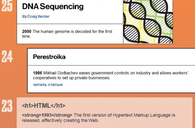 Издание предлагает инфографику с возможностью переходить от названия изобретения (идеи) к статье о ней.
