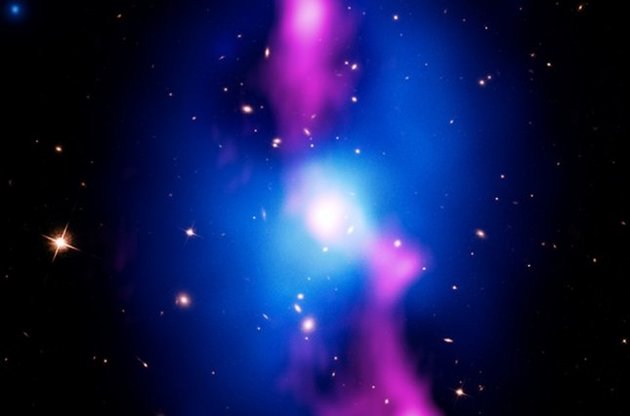 Используя данные обсерватории Чандра, исследователи смогли получить снимок, на котором можно заметить, что горячий газ составляет большую часть массы космического тела (окрашено в синий). На снимке также видны пустоты, которые были образованы в результате влияния сверхмассивной черной дыры, которая выпускает интенсивное излучение (окрашено в розовый).