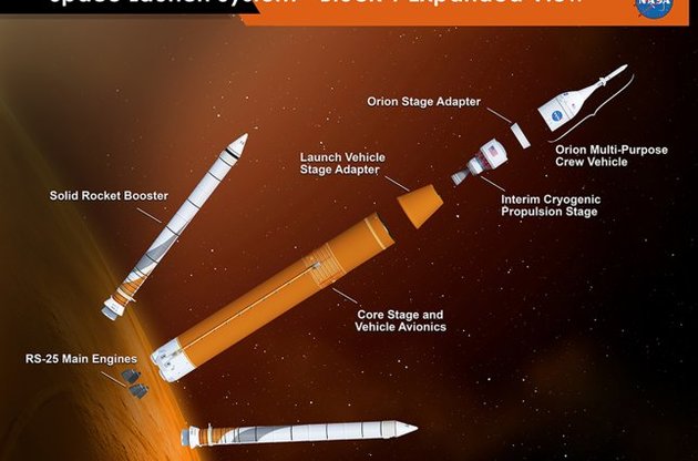 Space Launch System в базовой версии сможет выводить на орбиту 70 тонн груза. Ракета будет оснащена четырьмя двигателями RS-25 и двумя боковыми ускорителями. На сайте NASA была размещена схема ее конструкции. SLS является самой мощной ракетой из всех, построенных на данный момент.