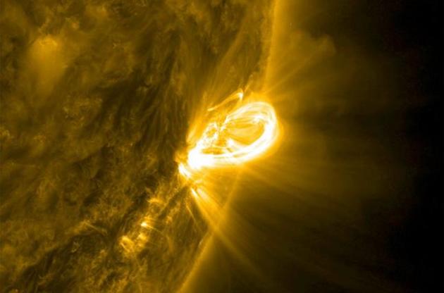 Активные регионы – области образования сильных магнитных полей. Силовые линии магнитного поля над этими регионами подсвечиваются заряженными частицами, которые появляются по спирали над ними.