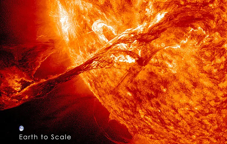 Солнце все еще находится на максимуме своей активности, поэтому часто выбрасывает вспышки, которые могут сопровождаться корональными выбросами массы. Последние вызывают магнитные бури на Земле.
