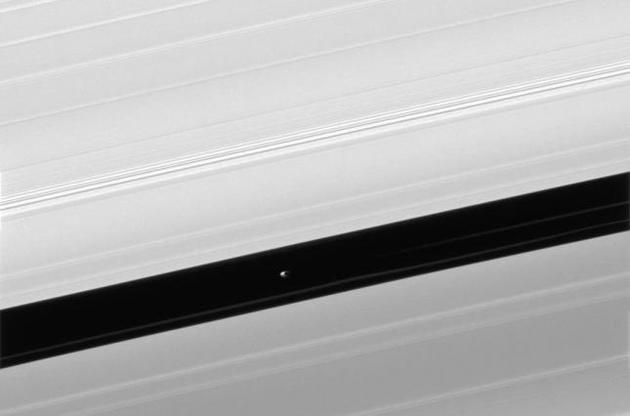 Станция Cassini передала на Землю впечатляющий снимок спутника Сатурна Пана, который расположился между кольцами Планеты. Снимок был опубликован на сайте NASA.