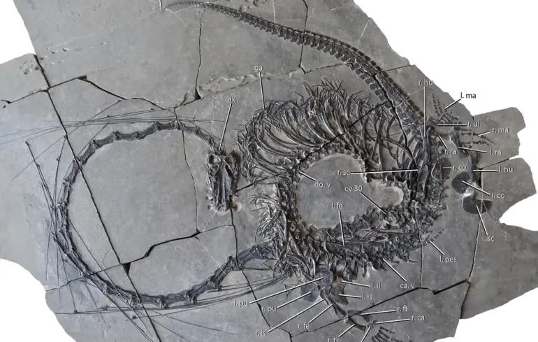 Почти полная окаменелость принадлежит Dinocephalosaurus orientalis - морской рептилии. Ее необычайно длинная шея и породила ассоциации с мифическим драконом. Находка может больше рассказать о жизни на Земле в триасовом периоде. Она также ставит под сомнение прежние представления об анатомии и поведении древних рептилий.