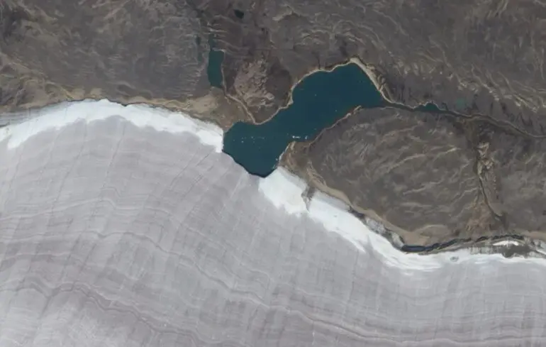 Земля из космоса: небольшое озеро встречает старейший ледник Канады