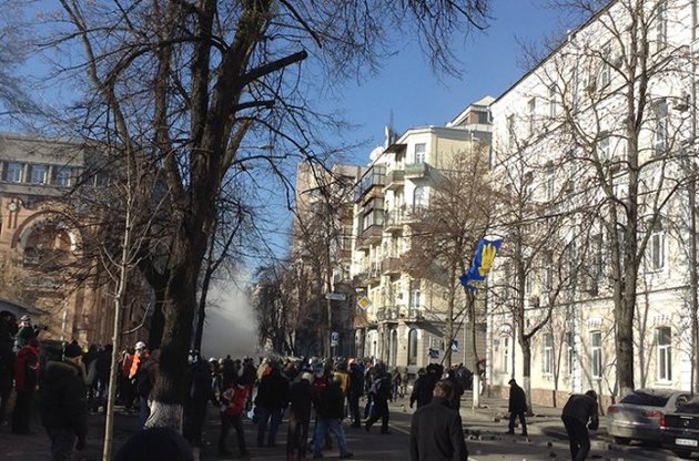Наступление силовиков началось от Администрации президента. Правоохранители используют водометы, слезоточивый газ и светошумовые гранаты. Кроме того, "беркутовцы" открыли огонь по людям из огнестрельного оружия. Повстанцы вынуждено отступают, отбиваясь бутылками с зажигательной смесью.