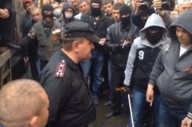 Пророссийски настроенные активисты согласились деблокировать находящихся во внутреннем дворе здания около 150 бойцов Нацгвардии в ответ на обещание последних не применять против них оружие и вернуть его в расположенные в части оружейные комнаты.