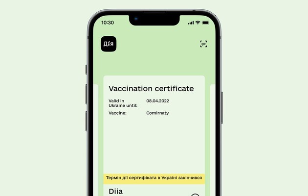 СOVID-сертификаты, срок действия которых истекает, больше не будут исчезать из приложения с государственными услугами «Дія».