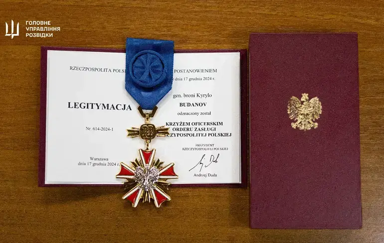 Президент Польши Анджей Дуда наградил начальника Главного управления разведки минобороны Украины генерал-лейтенанта Кирилла Буданова одной из высших наград Республики Польша для иностранцев - Золотым Офицерским Крестом ордена "За заслуги перед Польшей", сообщила пресс-служба ГУР.