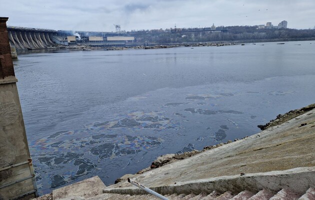 Государственная экоинспекция Южного округа сообщает, что в результате ударов по Днепровской ГЭС в Запорожье произошла масштабная утечка нефти в Днепр. В сообщении на Tg-канале инспекции говорится, что зафиксировано также засорение грунтов.