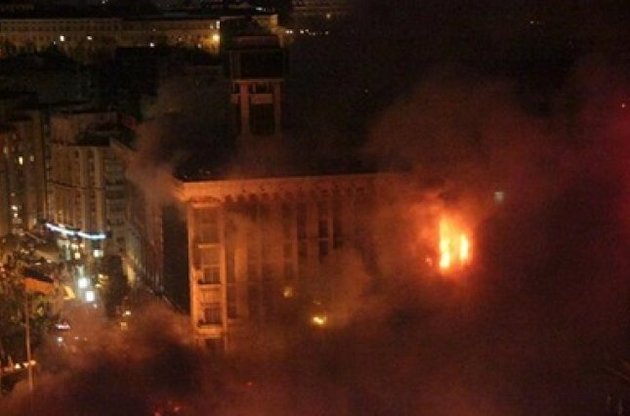 "Причиной поджога могла стать попытка злоумышленников скрыть наличие в здании оружия и взрывчатки", - говорится в сообщении МВД Украины, обнародованном в среду утром.