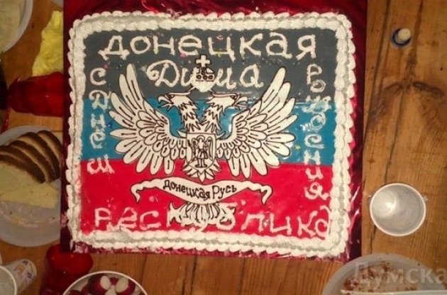 Гости подарили виновнику торжества большой торт с изображением герба и флага террористической организации "ДНР", а также флага России.
