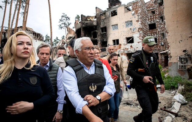 Премьер-министр Португалии Антониу Кошта приехал с рабочим визитом в Украину и заехал в Ирпень - полуразрушенный рашистами город на Киевщине.