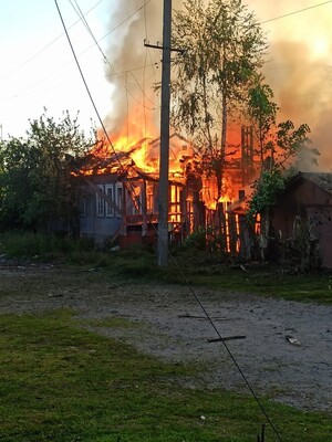 По его словам, не менее шести домов, хозяйственное сооружение и гараж повреждены. Там разгорелись пожары.