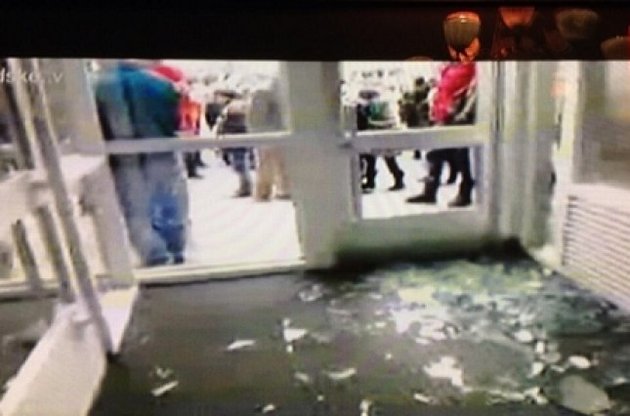 Митингующие сорвали камеры наблюдения в здании, охрана покинула здание.