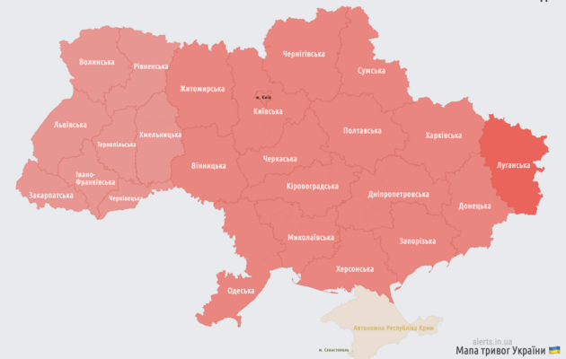 Почти по всей Украине (кроме Крыма) звучит воздушная тревога. Представитель Воздушных сил ВСУ Юрий Игнат во время телемарафона рассказал, что россияне выпустили по нам ракеты из Каспийского и Черного морей, вероятно, несколькими волнами.