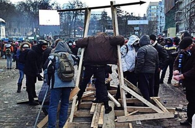 В Киеве на улице Грушевского продолжаются столкновения, количество митингующих, по состоянию на 15:15, составляет около 3 тыс. человек. Активисты начали строить катапульту для противостояния с бойцами "Беркута".
