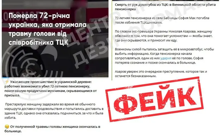 Вражеские ресурсы придумали историю о якобы убийстве 72-летней жительницы Винницкой области сотрудниками ТЦК, сообщает Центр противодействия дезинформации. Так, пропагандисты утверждают, что женщину по имени София Мак якобы избили по подозрению в помощи уклонистам, и впоследствии в больнице она скончалась. Этот сюжет подают как материал украинских СМИ.