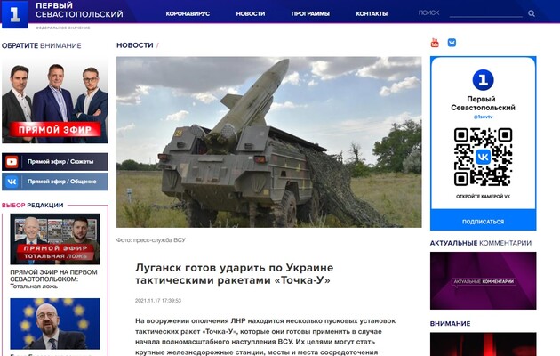 «Луганск готов ударить по Украине тактическими ракетами «Точка-У»», – говорится в статье, которую «телепортал «Первый Севастопольский» опубликовал в ноябре 2021 года. В материале севастопольское издание ссылалось на источник «Авиа.Про».
