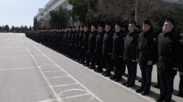 Евменов заявил "экипажу крейсера", что они продолжат службу в ВМФ РФ.