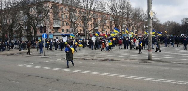 В акции протеста против российских захватчиков приняло участие несколько тысяч жителей города.