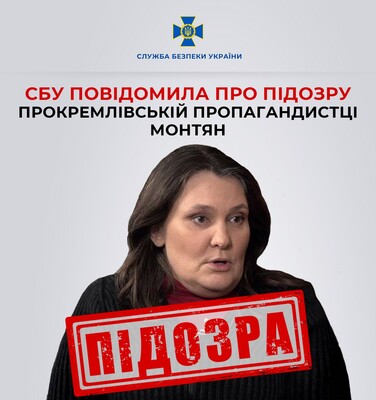 Служба безопасности сообщила о подозрении кремлевской пропагандистке Татьяне Монтян, которая публично оправдывает Россию за развязывание войны против Украины. Согласно сообщению СБУ, ее подозревают по четырем статьям Уголовного кодекса Украины.