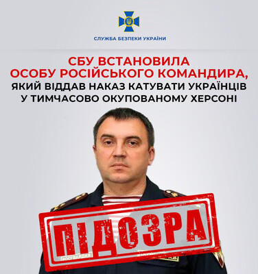 "Он лично участвовал в разгоне мирных митингов в Херсоне. Отдавал приказы применять против украинских граждан светошумные гранаты и слезоточивый газ. Среди херсонцев были пострадавшие, - сообщает пресс-служба Службы безопасности. - Кроме того, по его указанию российские военные похитили двух украинцев и несколько недель жестоко их пытали. Они пытались выбить из них информацию о военных ВСУ и их местах дислокации, а также склоняли к сотрудничеству с оккупантами".